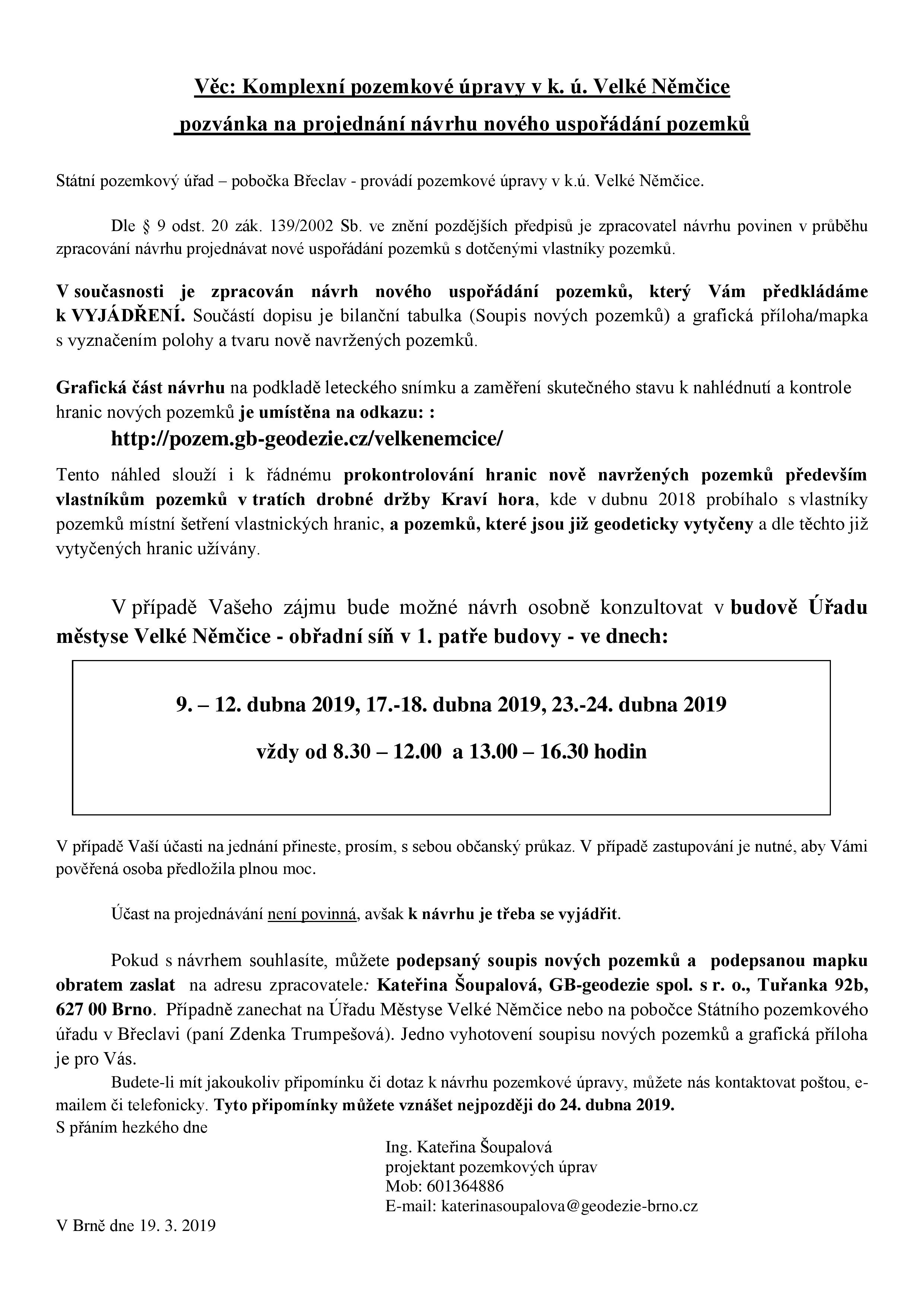 Komplexní pozemkové úpravy v k. ú. Velké Němčice pozvánka na projednání návrhu nového uspořádání pozemků