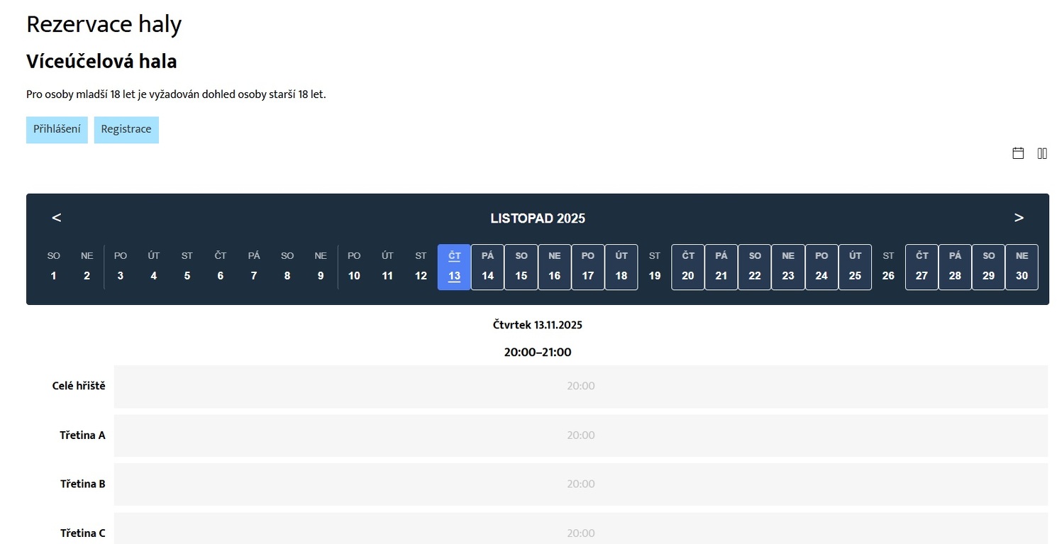 Rezervační systém do sportovní haly